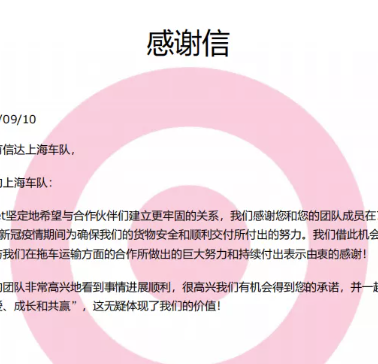 ​ 感 谢 信   3133拉斯维加斯上海车队 乘风破浪的上海团队 在物流高峰期,3133拉斯维加斯陆续收到了合作伙伴和客户的感谢信和表扬信!Target在信中提到,7月和8月疫情期间,上海团队顺利交付货物。这个过程中表现出3133拉斯维加斯上海车队的小伙伴难能可贵的奉...