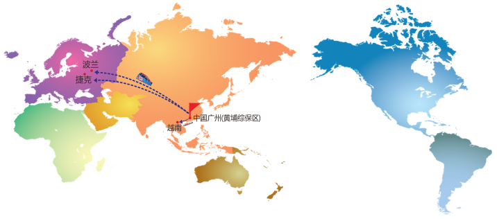 4月27日上午,价值百万美元的两个40尺集装箱货物从越南海运进入黄埔综保区,并于当天下午通过“属地申报,运抵换乘”模式转至黄埔新港集司码头,最终在码头上中欧班列经阿拉山口离境运往波兰与捷克。在运输时效方面,货物经越南到达广州黄埔再上班列到达波兰全程用时约24天;而传统海运则需时65天,相较之下节省近三份之一的在途时间。